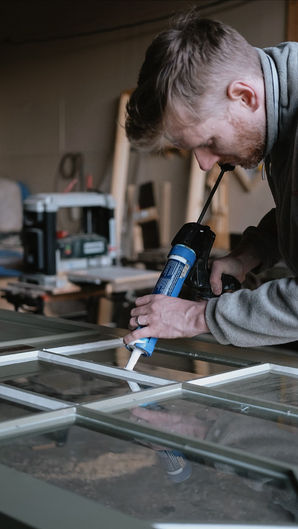 Kitt: Äkta kittade spröjs. LASeal akrylkitt omålat vitt som standard. Alternativt linoljekitt målat som tillval.